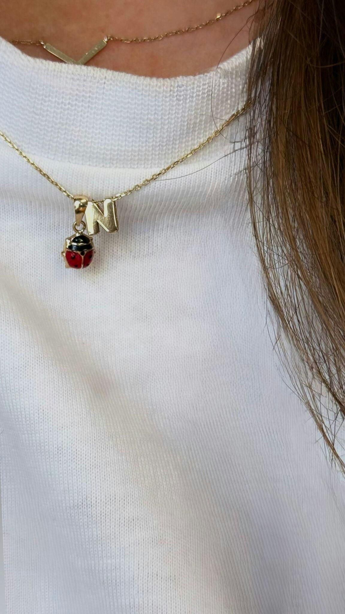 Der kleine Marienkäfer ist mir sofort aufgefallen und liebe ihn so sehr! Kombiniert mit meinem Letter-Anhänger trag ich ihn jeden Tag. Liebe die Kombi!