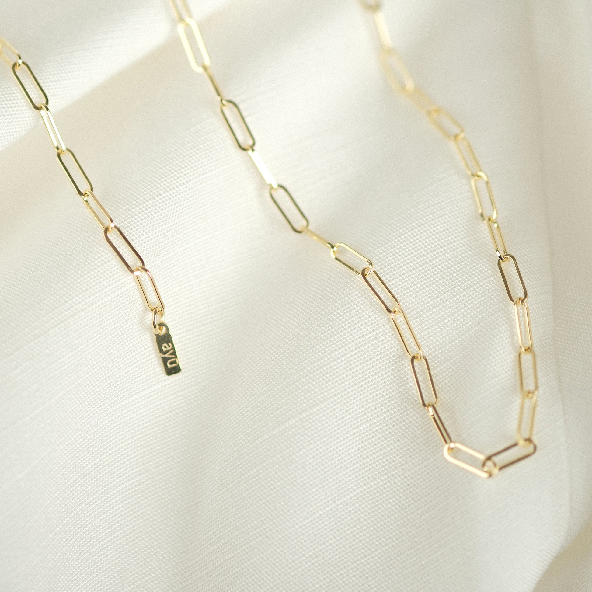 Das moderne Paperclip-Design wirkt klar und zeitlos zugleich: nicht zu filigran, nicht zu chunky. Solo getragen ein dezentes Statement; mit Anhänger oder im Layering vielseitig kombinierbar – von casual bis elegant.